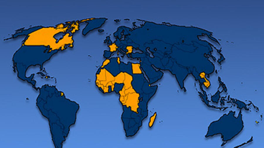 Member states of the Agence Intergouvernementale de la Francophonie (in orange) are among the targeted audience for UNHCR's revamped website in French.