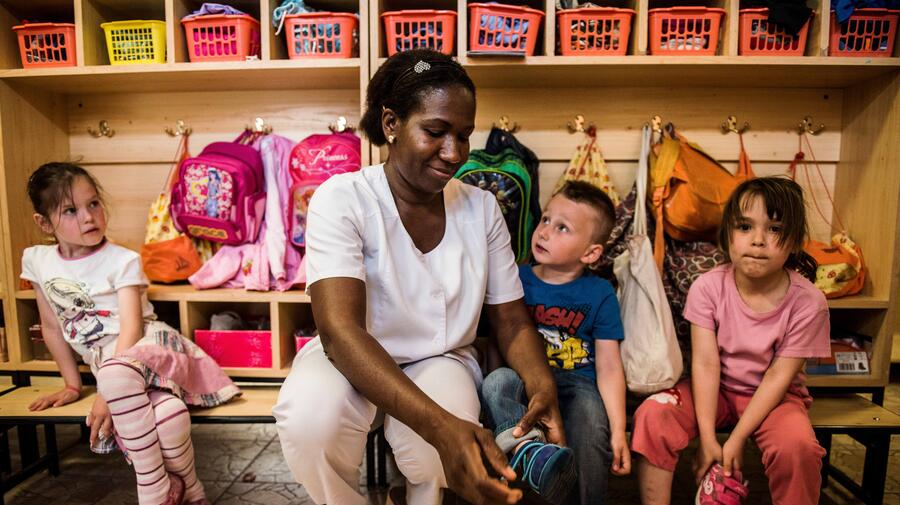 Sophie, 30, takes care of children in the kindergarten where she works in Budapest, Hungary. Sophie, 30, fled her native Togo in West Africa to avoid forced female genital mutilation. She was recognized as a refugee in 2004 and has twin boys, aged 10, and a daughter, seven, all born in Hungary. She says she has lost all touch with her family in Togo and would like to become a Hungarian citizen – but her application has been rejected twice.