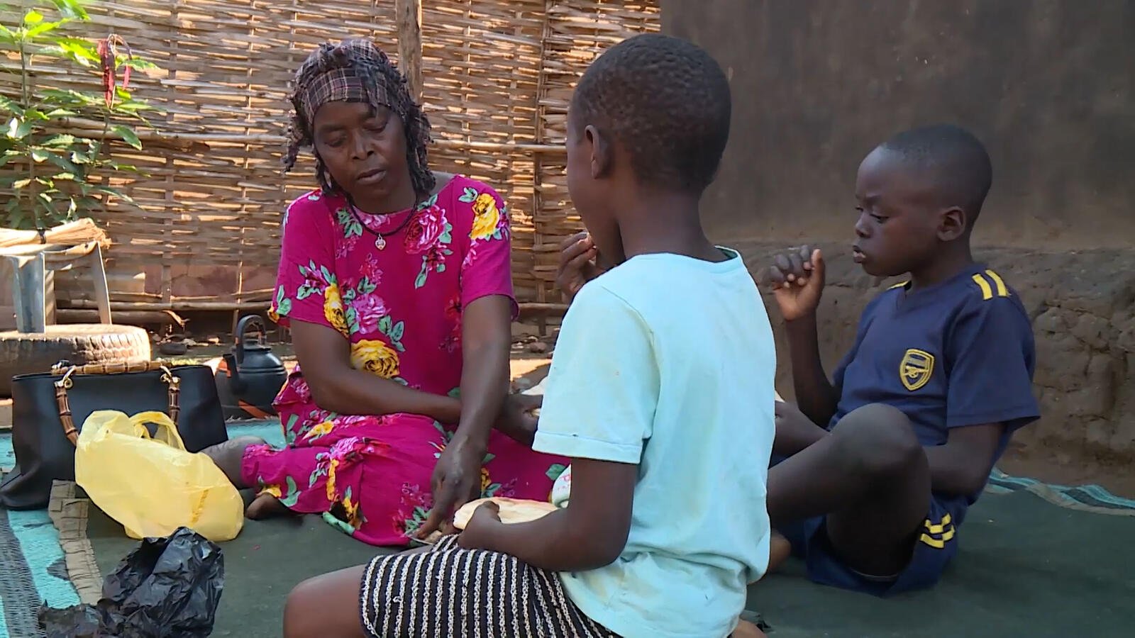 South Sudan. Returnee and her family in their temporary home in Juba