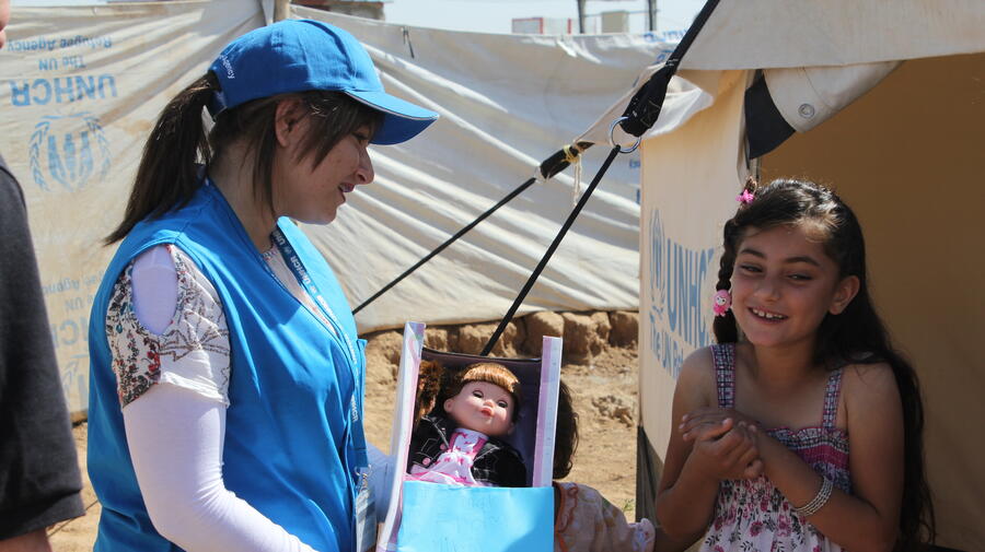 DOMIZ REFUGEE CAMP, Iraq, June 12 (UNHCR) - The pretty young girl looked confused when the aid worker came to her tent and held out a cardboard box. It contained a doll and a card, and when she realized it was for her, nine-year-old May's face melted into a smile of delight. The thing she had missed most after fleeing her home in Damascus was her doll, Nancy, and now someone on the other side of the world had sent her a replacement. The gesture gave her hope in humanity.