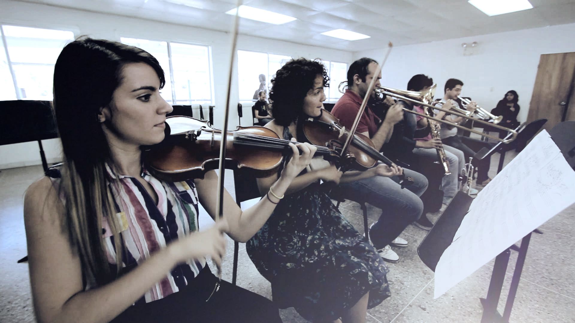 Young musicians practise for flash mob events to be held in Venezuela under a WRD project with Fundamusical.
