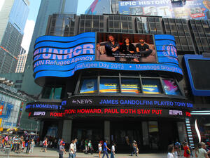 In Washington, DC, United States Secretary of State John Kerry took part in a special ceremony at the US Department of State. The event included a live link with High Commissioner Guterres in Jordan and a performance by rising star Diamond White, the X Factor fan-favourite, of a song called "Peace." The song was released today in support of UNHCR's "1 family" campaign. It is dedicated to the more than 40 million people around the world who have been forced to flee war or persecution.