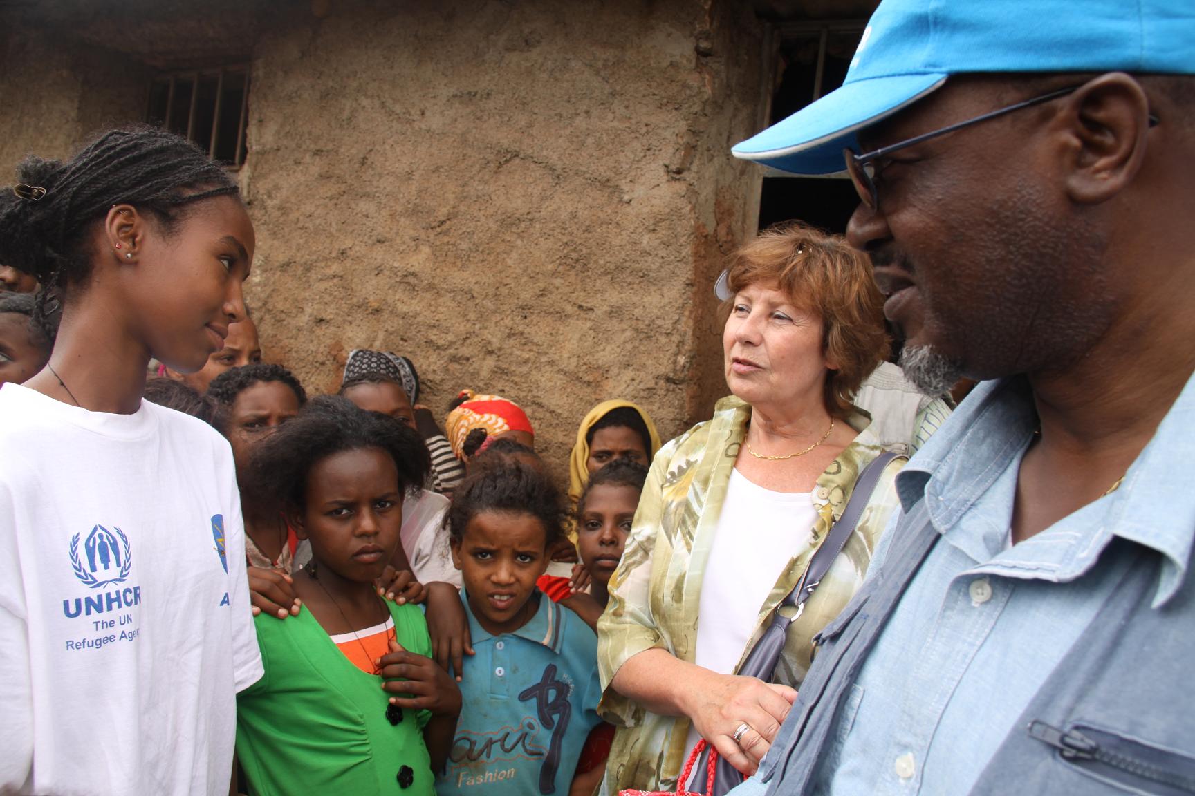 Assistant High Commissioner Erika Feller and UNHCR Ethiopia Representative Moses Okello with a group of Eritrean unaccompanied minors in northern Ethiopia.