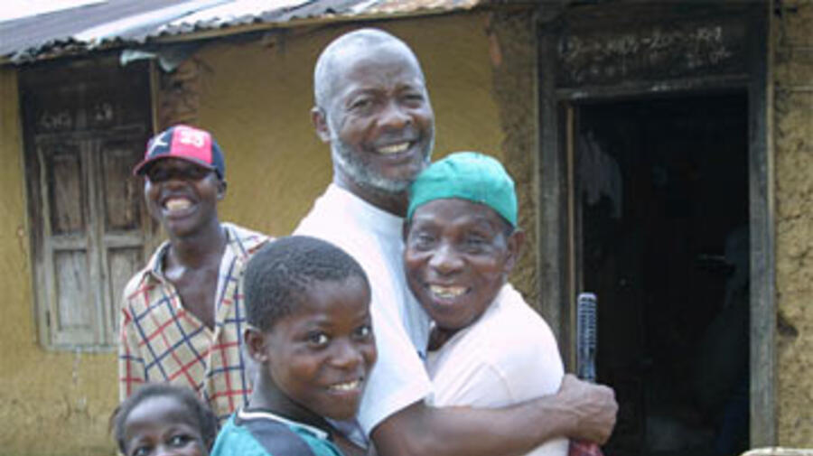A happy reunion for Liberian returnee Umaru and his relatives in Sinje town, Grand Cape Mount county.