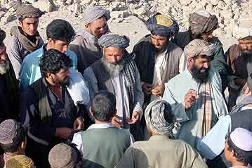 Najam Uddin (centre) representing of the people of Maqqur district in Badghis in a delegation sent to inform Afghan refugees in Pakistan's Balochistan province about conditions back home.