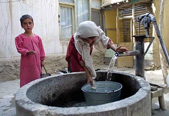 Safe drinking water is crucial in refugee situations, as these Afghan returnees in Kabul can testify.
