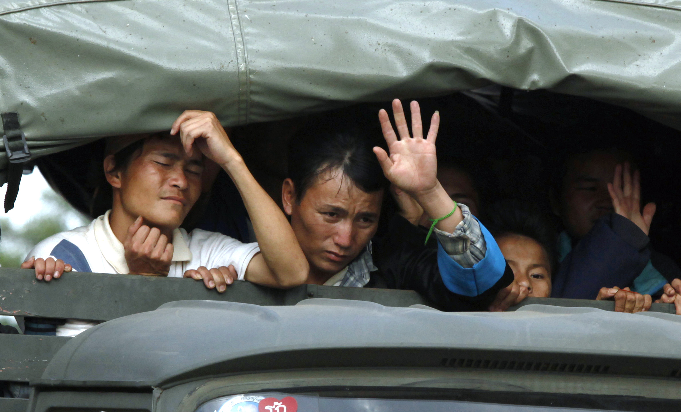 Ethnic Hmong stand inside a truck at the Ban Huay Nam Khao camp in Thailand's Phetchabun province before being forcibly repatriated to Laos.
