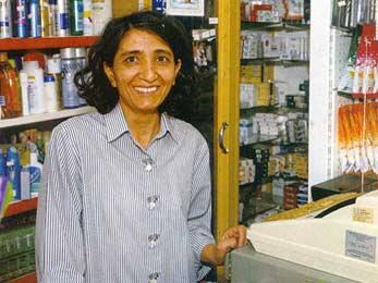 Tamel Aitogan, a Kurd from Turkey, owns a mini market in Greece, where she is happily settled.