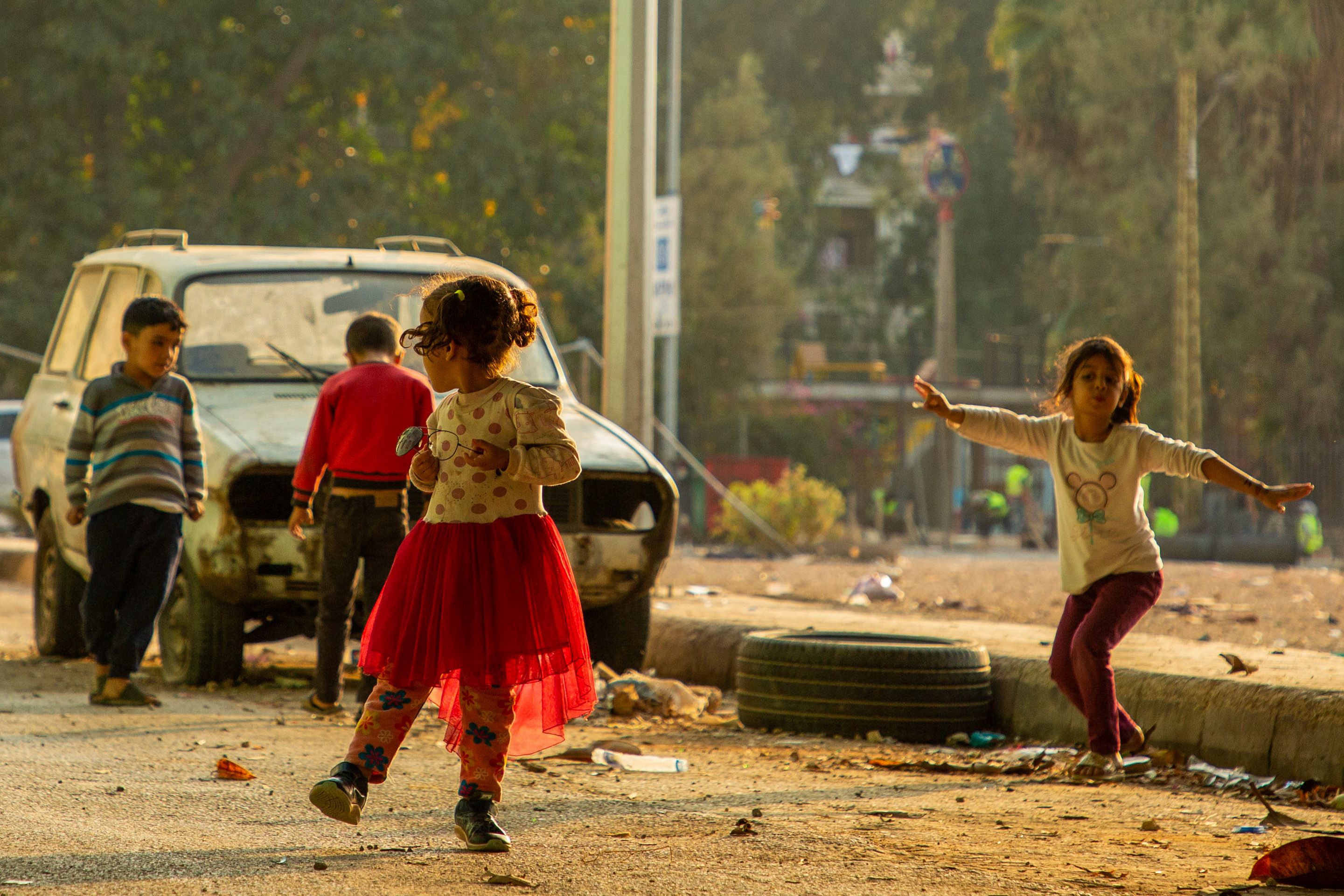 Syrische en Libanese kinderen spelen op straat in Beiroet. UNHCR en UNICEF zetten zich in om de kwaliteit van leven van vluchtelingenkinderen en hun gemeenschappen te helpen verbeteren. Zo proberen we ervoor te zorgen dat ze worden opgenomen in nationale kinderbeschermingssystemen en dat ze toegang hebben tot diensten en begeleiding.