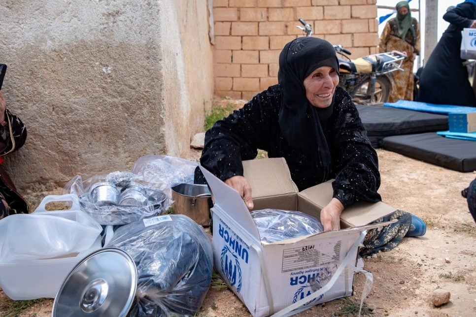 Ik ontmoet het personeel van een nationale organisatie die UNHCR helpt bij het uitdelen van wintervoorraden. We hebben nog steeds veel te maken met noodsituaties in verschillende delen van Aleppo. We zijn er om te helpen, onderdak en basisartikelen te bieden, zoals dekens, jerrycans voor het opslaan van water en meer. In de winter is het hier extreem koud. Daarom bieden we materialen, zoals doorzichtige plastic platen, om gezinnen te helpen vernietigde ramen en deuren te bedekken om de kou buiten te houden. Afgelopen winter hebben we meer dan 215.000 mensen in het gebied geholpen met essentiële items zoals slaapzakken, winterjassen, dekens en plastic zeilen.