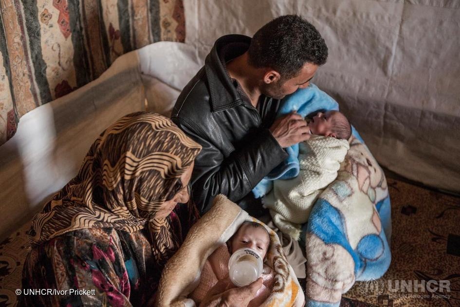 UNHCR en haar partners helpen Saleh met melk voor de baby's en andere benodigdheden. Ook heeft de familie een grotere tent gekregen en een kacheltje om ervoor te zorgen dat iedereen warm blijft tijdens de bittere kou.