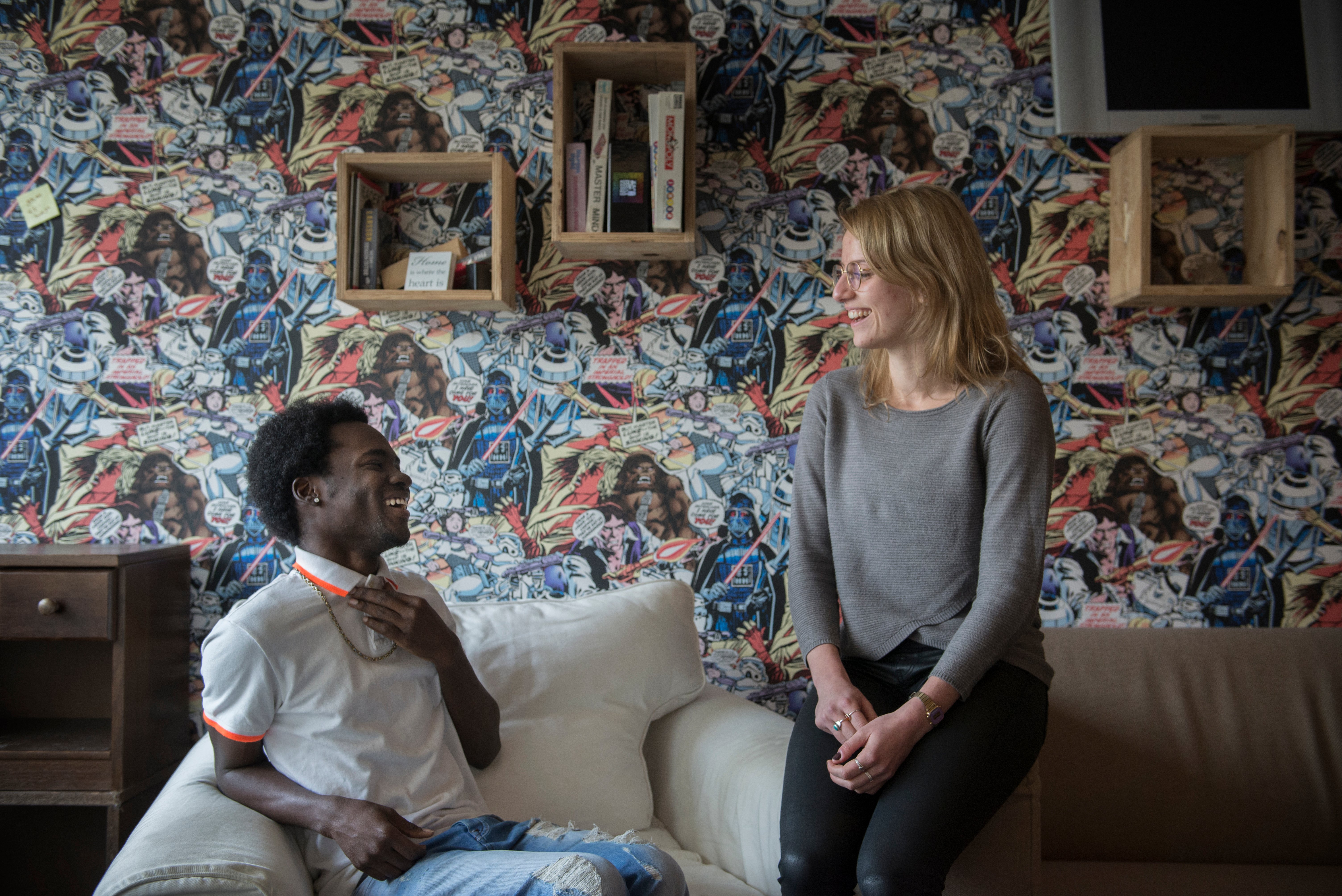 “Samuel en ik kwamen er snel achter dat we hetzelfde gevoel voor humor hadden”, zei de Nederlandse bewoner Amber Borra, die naar een gedeeld appartement in Startblok verhuisde om te ontsnappen aan de overvolle studentenhuisvesting. Ze was verbaasd over de gemoedelijke sfeer. “Je ontmoet hier zo makkelijk mensen,” zei Amber (26). “Ik was geïnteresseerd in het wonen met nieuwkomers, vanwege alles wat je in het nieuws hoort.”