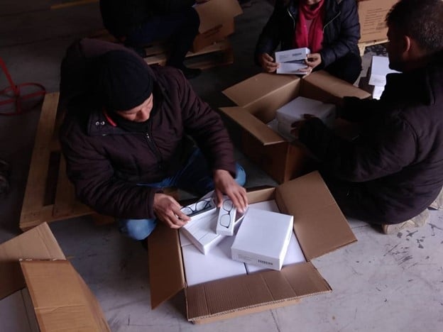 Brillerne fra Flying Tiger Copenhagen gøres klar til at blive uddelt til mennesker på flugt i Syrien. © UNHCR.