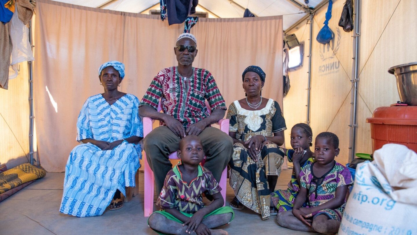 Sambo Maiga, 49, og hans familie i deres UNHCR shelter i en bosættelse for internt fordrevne mennesker i Kongoussi, Burkina Faso. © UNHCR/Anne Mimault