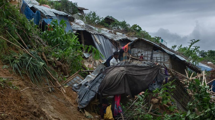 Mange steder i verden, er det her allerede en realitet. Som i Kutupalong-lejren i Bangladesh, hjem for næsten en million Rohingya-flygtninge. Her iværksætter UNHCR og vores partnere hver eneste monsun-sæson livreddende, præventive tiltag som eksempelvis at forstærke telte, bygge diger og broer, og fysisk flytte tusindvis af familier og deres telte til højereliggende områder, hvor der er mindre risiko for mudderskred.