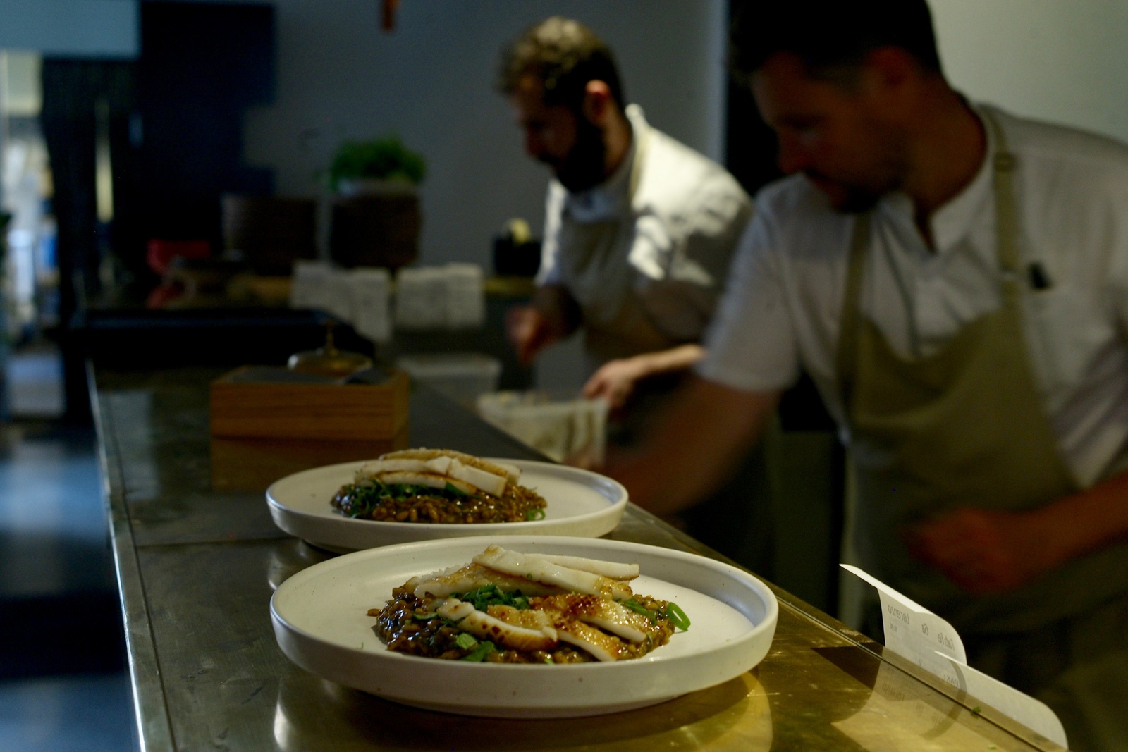 ”Vi gør os ikke så meget i fisk i det syriske køkken ... Men jeg elsker at kaste mig ud i nye ting, og jeg lægger altid vægt på detaljerne,” forklarede han. Og sammen med ILUKA’s kok Beau og restaurantchef Fanny fik han komponeret en innovativ menu, hvor nordisk fisk og skaldyr blev iklædt smage og aftryk fra Syrien.