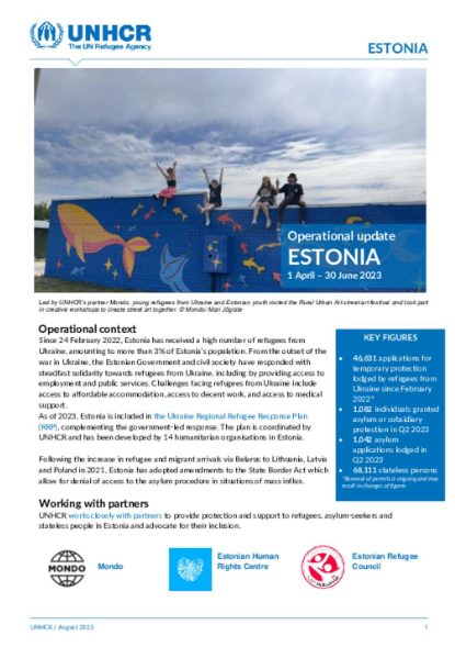 UNHCRi Põhja- ja Baltimaade esindus on avaldanud Eesti kohta tegevusteate, ajavahemiku kohta 1. aprillist kuni 30. juunini (II kvartal) 2023.