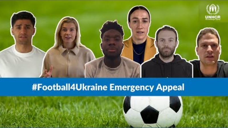 Sex þekktir knattspyrnumenn og konur hvetja almenning til að léta fé af hendi rakna í þágu flóttamanna og annara bágstaddra Úkraínumanna. Myllumarki átaksins er #Football4Ukraine því er ætlað að safna fé fyrir Úkraínuhjálp Flóttamanastofnunarinnar (UNCHR) og Matvælastofnunarinnar (WFP).