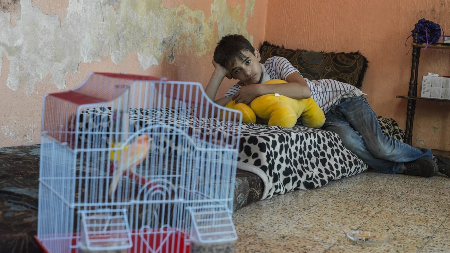 „Það hefur verið erfitt,“ sagði hann um æsku sína í útlegð, þar sem hann hefur undanfarin sex ár sofið á slitinni dýnu ásamt foreldrum sínum og þremur systkinum í þröngri og rakri íbúð. „Ég hefði svo gjarnan viljað fara í skóla. Ég man daginn sem við komum hingað og ég fór út að leika. Ég lenti í slag við krakka.“