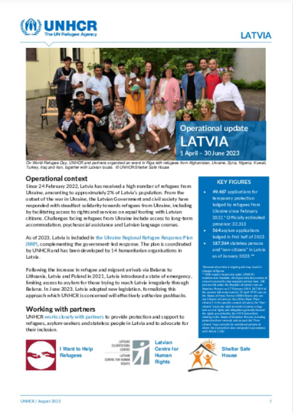 ANO Augstā komisāra bēgļu jautājumos (UNHCR) pārstāvniecība Ziemeļvalstīs un Baltijas valstīs, ir publicējusi atjauninātu operatīvo informāciju par Latviju, par laika posmu no 2023. gada 1. aprīļa līdz 30. jūnijam (2. ceturksnis)