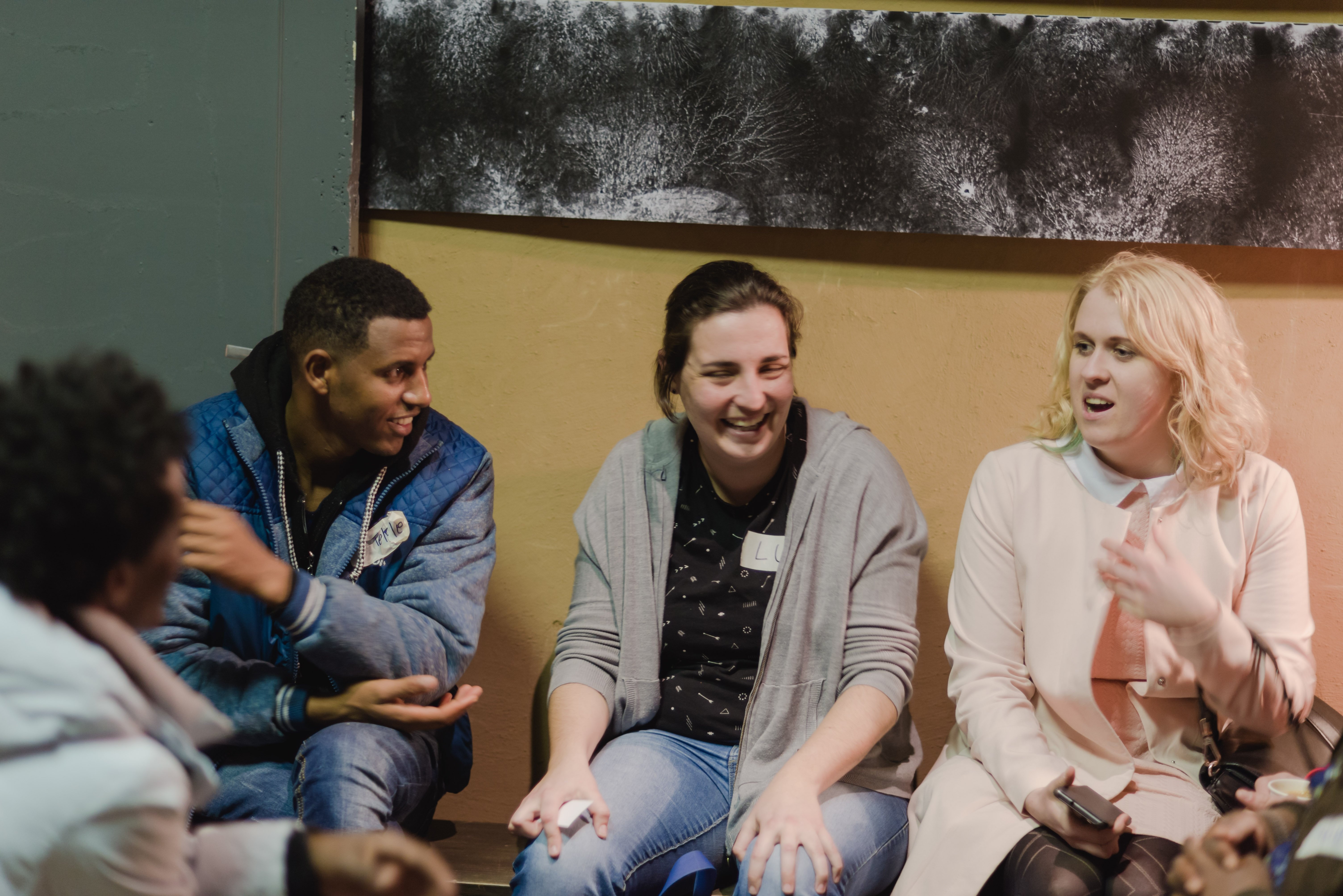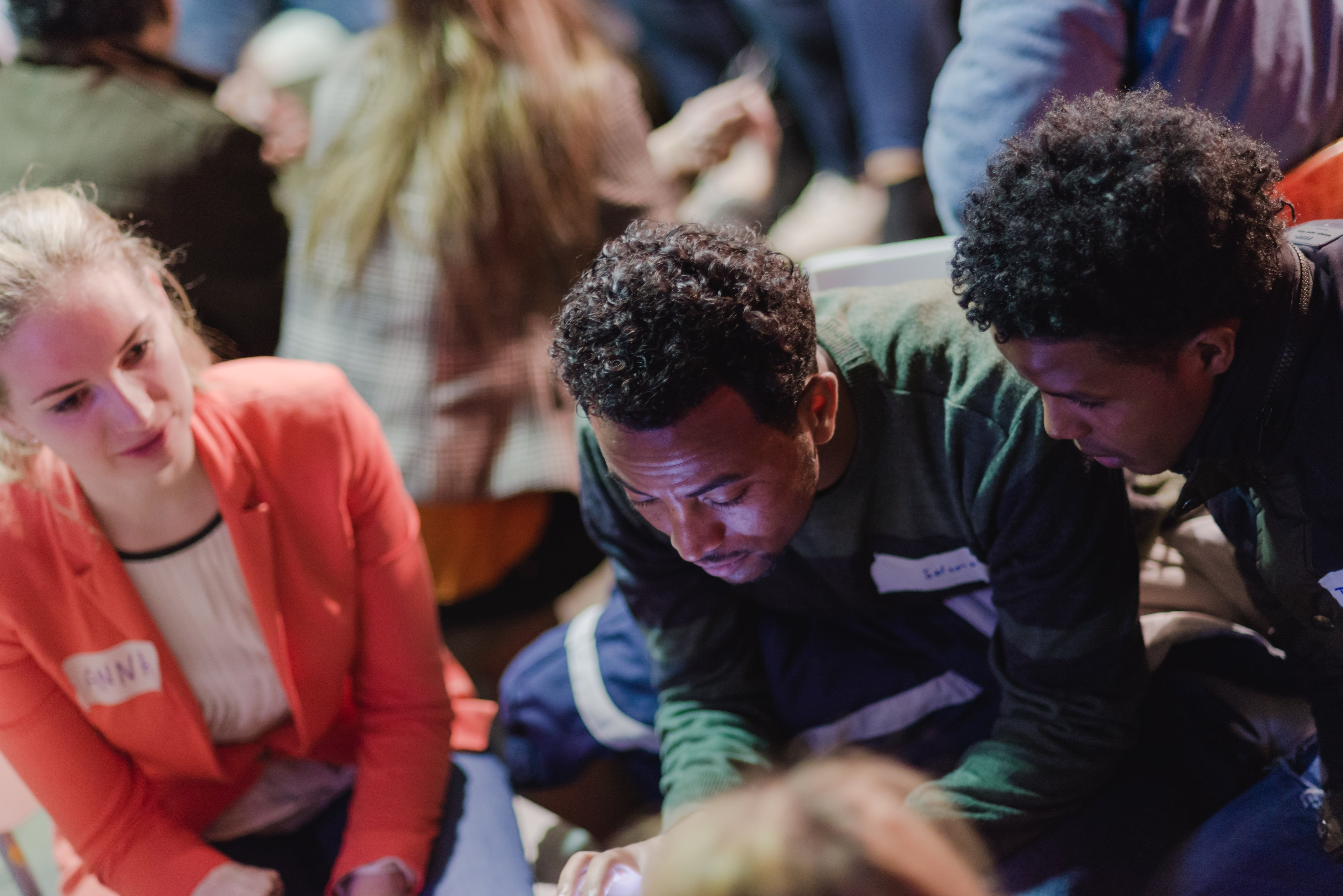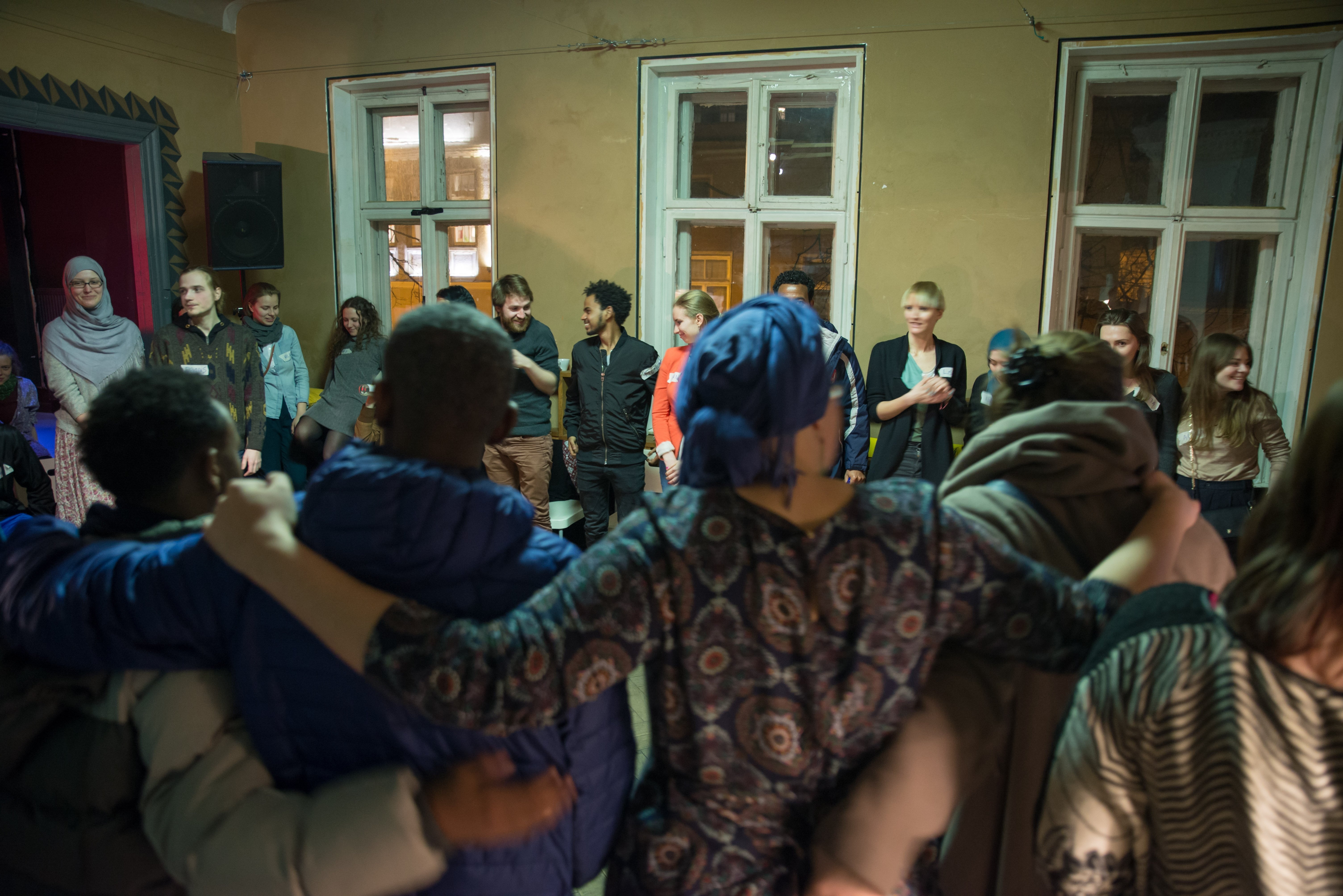 Pirmdienas vakarā, ierodoties Kaņepes Kultūras centrā, ēkā, kas cauri laikiem iemiesojusi Rīgas sabiedrisko dzīvi, sarunas jau rit pilnā sparā. “Gribu palīdzēt bēgļiem” brīvprātīgie aicina ikvienu dalīties ar stāstiem no savas dzīves īsā iepazīšanās aplī. Tādējādi visi apmeklētāji tiek uzreiz iesaistīti neformālā sarunā, proti, tādā sarunas formātā, kuru pasākuma organizatori ir identificējuši kā vispiemērotāko, lai veicinātu izpratni par cilvēku dažādo pieredzi.