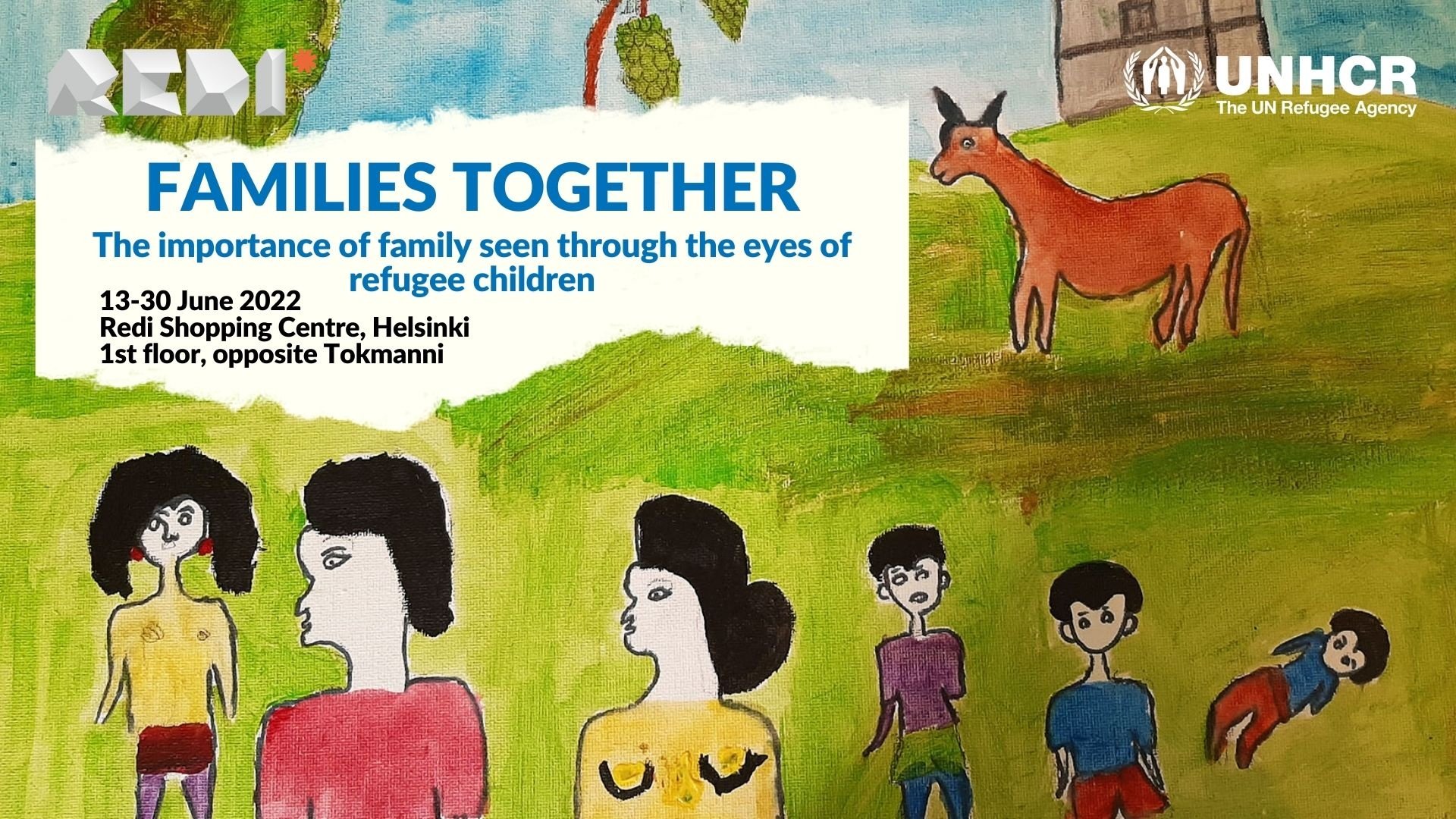 The exhibition is created in close cooperation with the Redi Shopping Center, who has generously agreed to host it, and it will run from 13 - 30 June, displaying numerous drawings about family and family life – created by refugee children hosted in Bangladesh, Ethiopia, Libya, Mozambique and Romania. The exhibition will also exceptionally be open on 11 June at 13-15 as part of the Helsinki Day celebrations across the city.