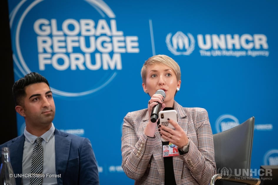 “Looking ahead, it is clear that we can achieve so much when we work collaboratively and as equal partners,” refugee co-sponsor Tina Dixson, who sought asylum in Australia in 2012 as a queer human rights activist, told the closing session.