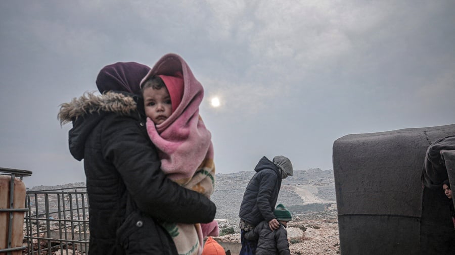 Syrian families, who have been forcibly displaced due to the ongoing attacks are seen at a camp in Turmanin in the western rural of Aleppo near Turkish border on a cold winter day in Idlib, Syria. ©Ritzau Scanpix