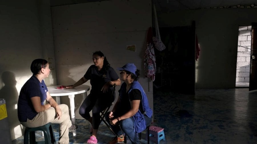 Venezuelan mother Lysette, centre, at her new home in Lago Agrio, Ecuador, where she and her family are supported by UNHCR and partner HIAS on community-based mental health and psychosocial support. © UNHCR/Santiago Escobar-Jaramillo