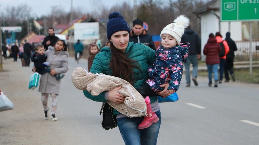 Mother and children leaving the war in Ukraine to seek safety in Europe © UNHCR/Zsolt Balla