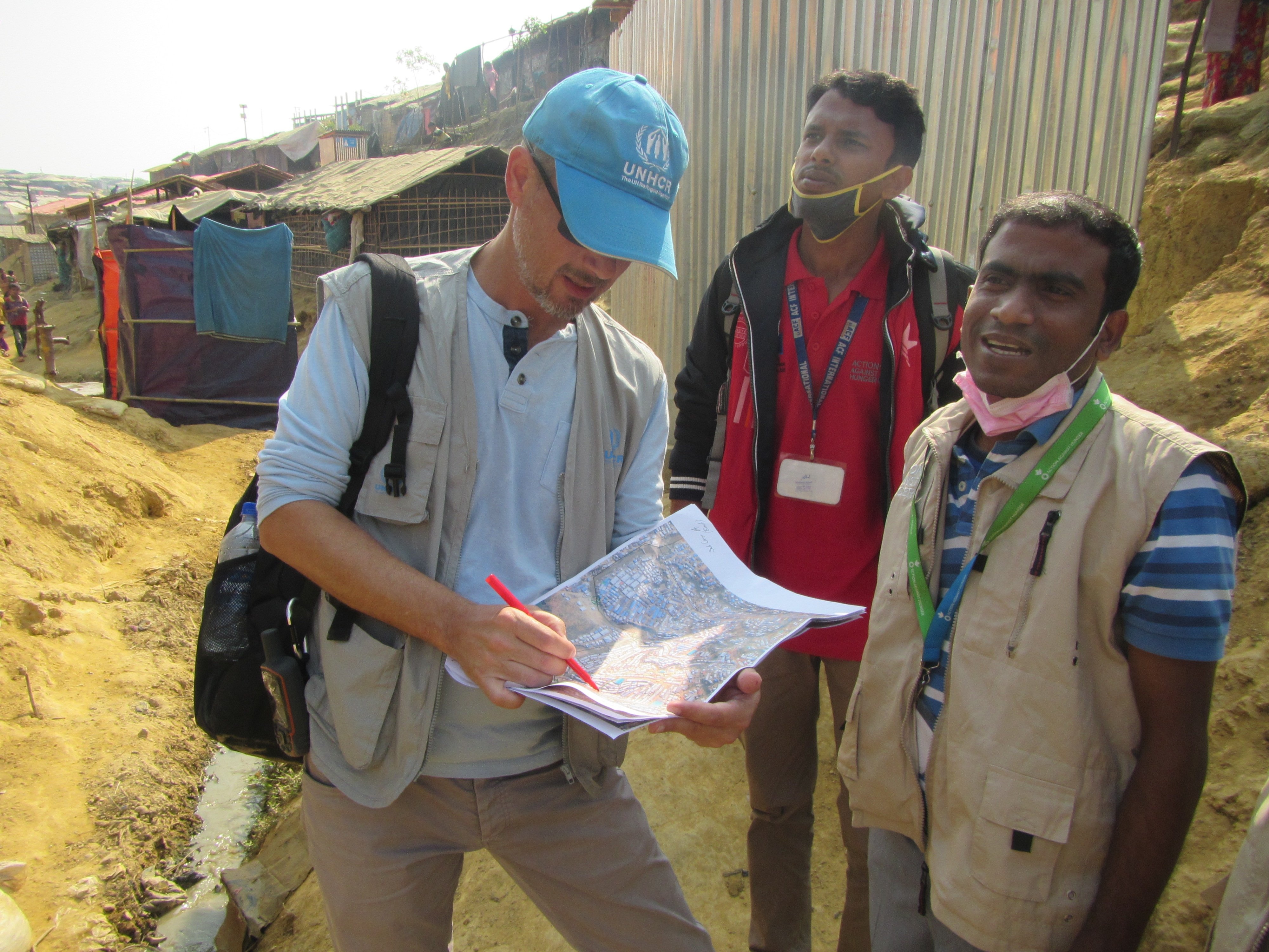 «Jeg jobber som Senior Shelter Officer i Cox's Bazar i Bangladesh. Vi er et team på 18 personer, som for det meste består av ingeniører og bosettingsplanleggere. Vi jobber for øyeblikket med å få humanitære aktører og styresmakter til å se på leirer i en urban sammenheng. Vi forstod raskt at befolkningstettheten i leiren var nesten like høy som i Dhaka og Manila – byer som har noen av de høyeste befolkningstetthetene i verden. Og her bor alle på bakkeplan.
