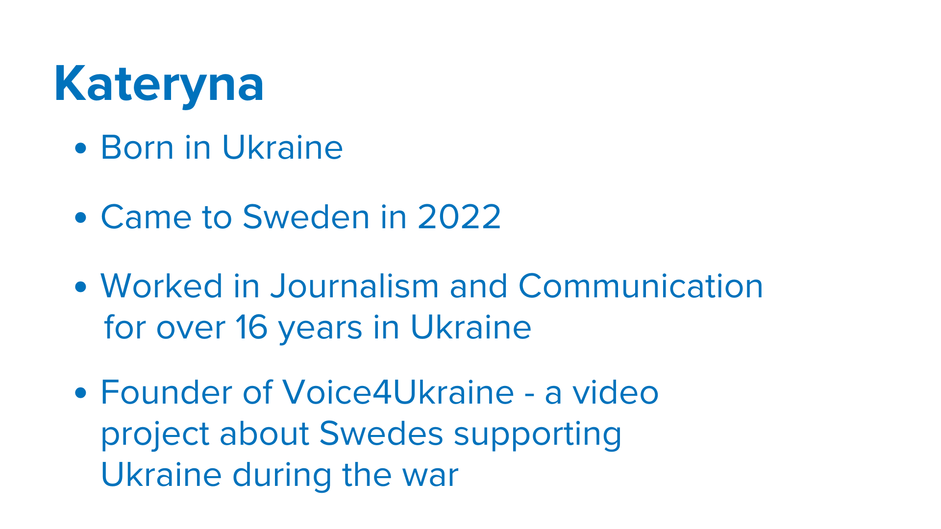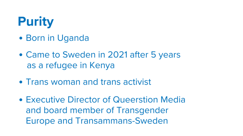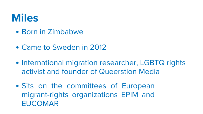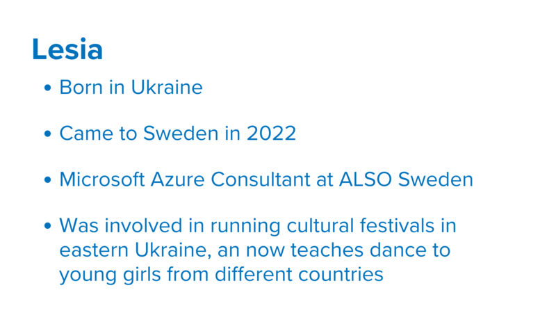 Throughout the programme, the participants – Lesia, Ayan, Purity, Kateryna, and Miles – participated in a series of workshops and received individual coaching in public speaking to prepare them for sharing their personal stories about fleeing and building a new life in Sweden.
