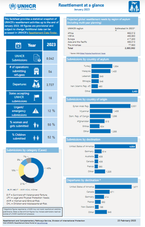 Mindre än en procent av världens flyktingar får möjligheten att vidarebosättas och behovet av ytterligare flyktingkvoter är omfattande. UNHCR vädjar därför till mottagarländer om att öka sina flyktingkvoter och att fler länder ska gå med i kvotflyktingsystemet.