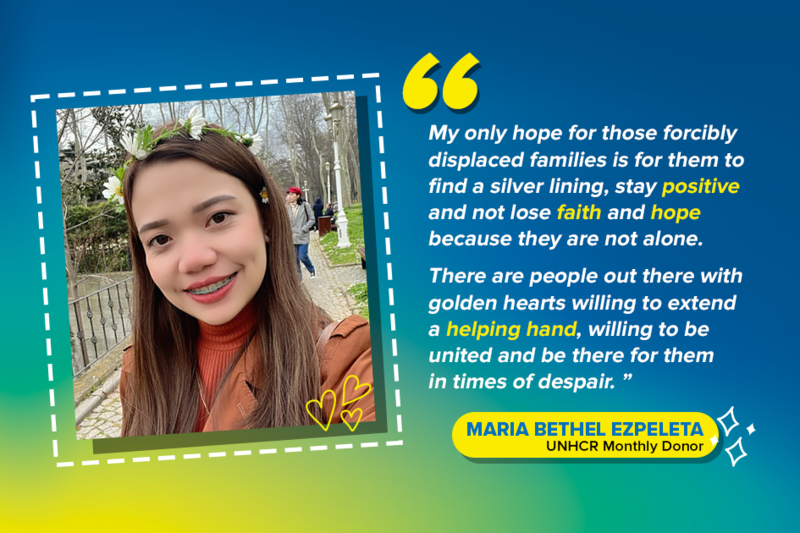 “My hope is one day, more and more donors would help UNHCR. I also hope that someday, more displaced families will have their permanent and peaceful home,” he shares.