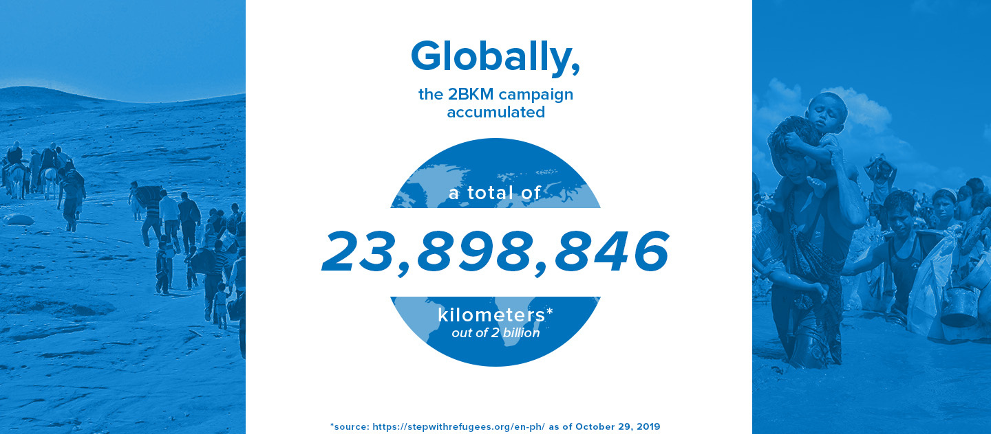 People all over the world are coming together to #StepWithRefugees through the 2 Billion Kilometers to Safety Campaign, a global movement that invites everyone to walk, run, hike, cycle and swim in solidarity with the forcibly displaced. As of October 29, and through everyone’s collective efforts, we have covered over 23 million kilometers and counting.