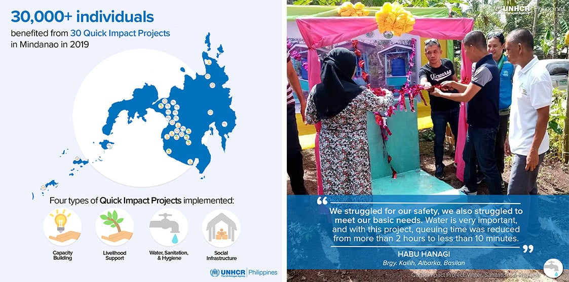This is only one of 30 Quick Impact Projects (QIPs) that UNHCR Philippines implemented in 2019, reaching more than 30,000 individuals. QIPs promote confidence and self-reliance among the most vulnerable families, and build peace among the internally displaced and their host communities.