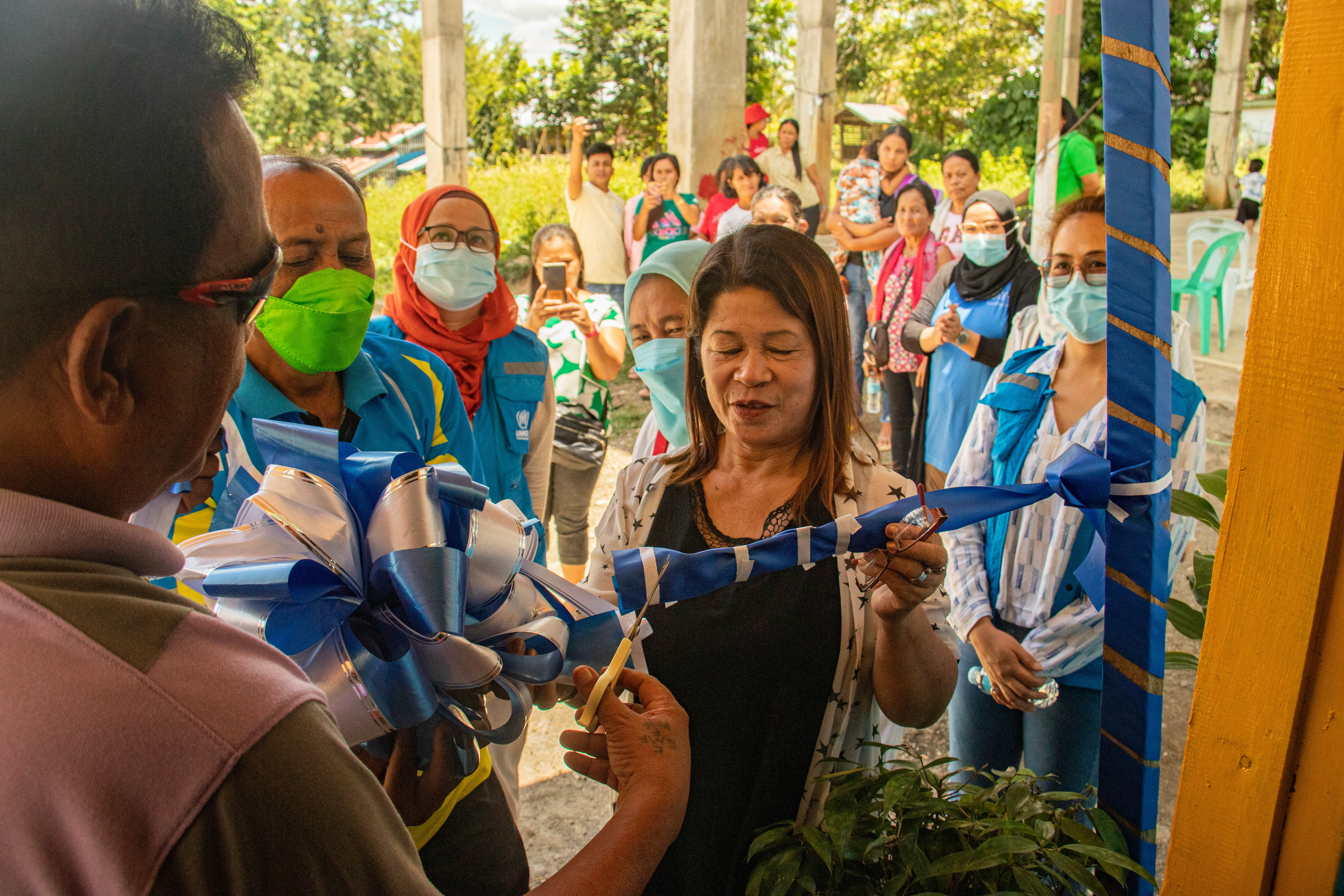 Maja during the handover of the facility together with UNHCR Philippines, Community and Family Services International, and representatives from the local government unit. © UNHCR/Mohammad Tajallih Basman