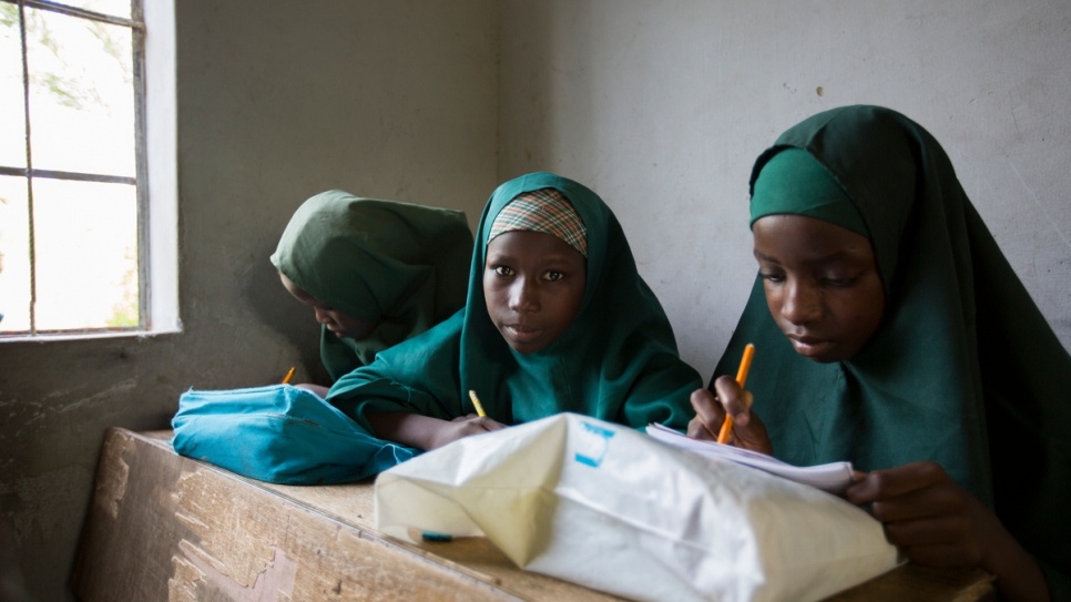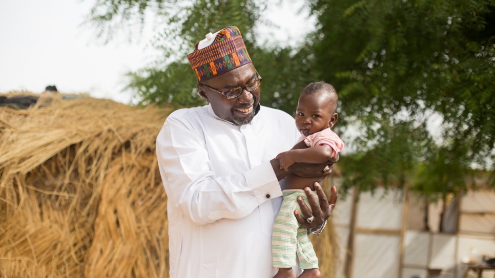 Near the school, Mustapha had made available some 16 hectares of land, which is farmed by displaced people living in nearby shelters, provided by UNHCR and its partners.