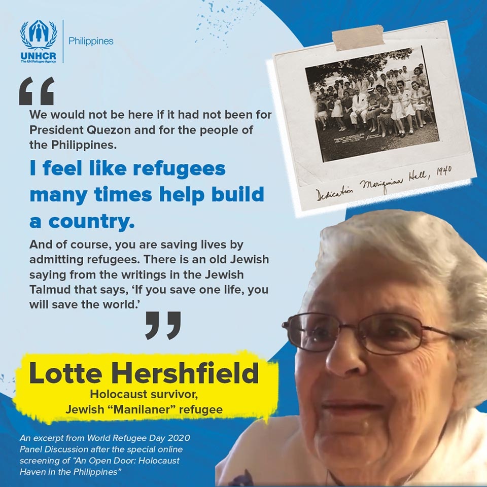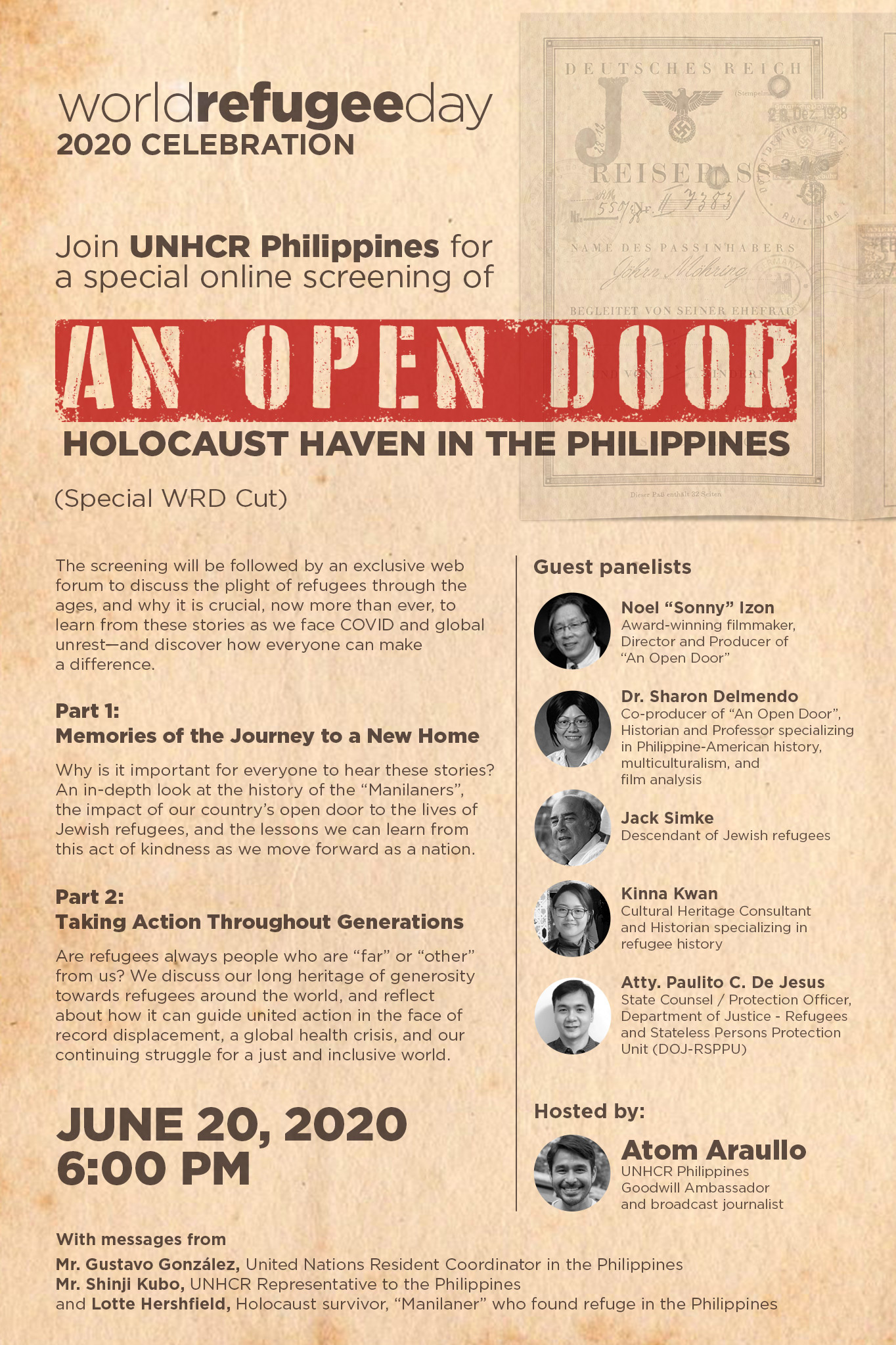 In commemoration of World Refugee Day this year, UNHCR held a special online screening of “An Open Door: Holocaust Haven in the Philippines,” which delves into the stories of Jewish refugees who escaped the Holocaust and found refuge in the Philippines through President Manuel Quezon’s then-daring Open-Door Policy. This act of kindness would open even more doors for refugees in search of protection in Philippine shores through the years.