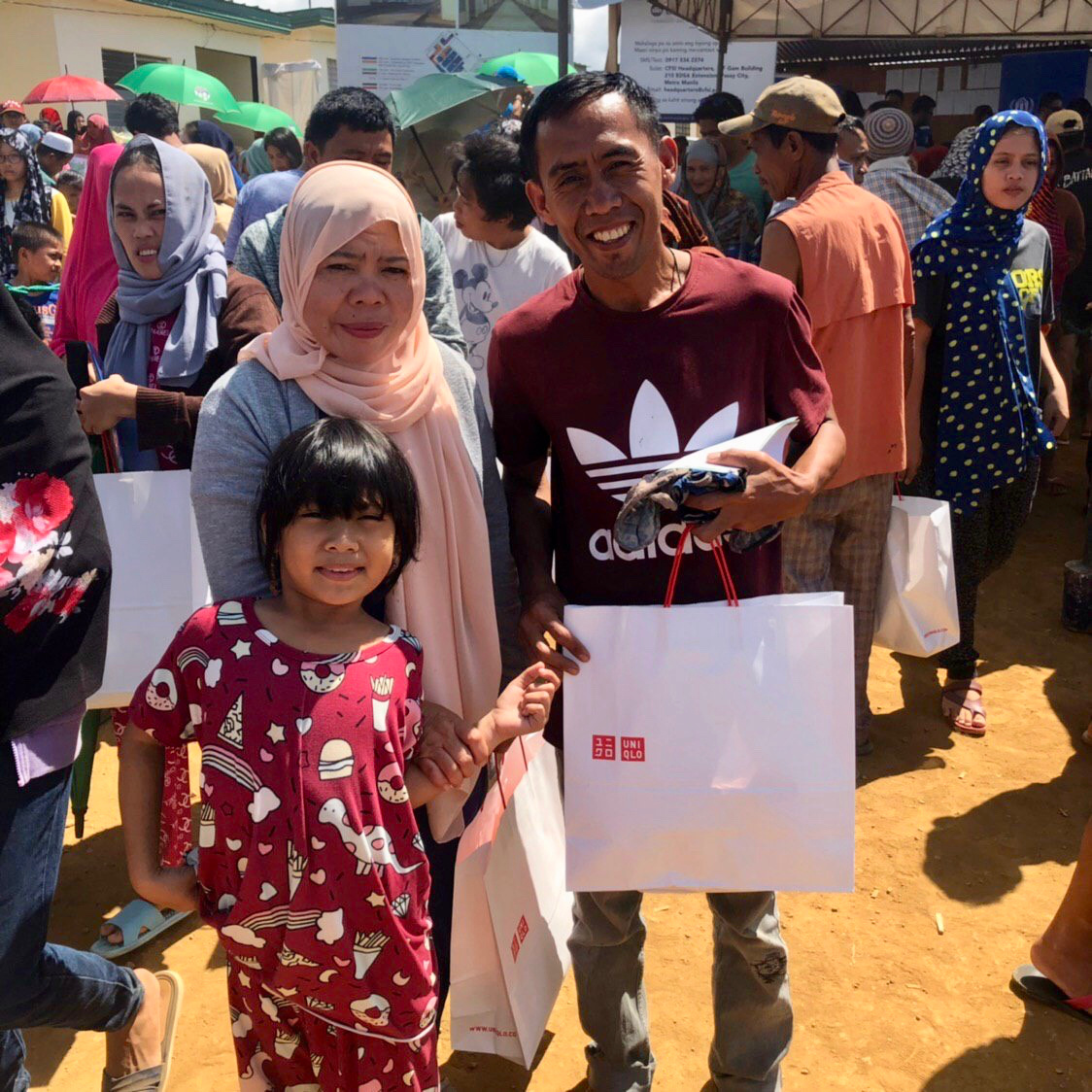 The men and women in this transitory shelter are all smiles. Even on this gloomy and humid August morning, the displaced community here in Boganga transitory shelter have something to be cheerful about. On World Humanitarian Day, UNHCR Philippines and its global partner UNIQLO showed solidarity for the people affected by the Marawi crisis. More than 700 displaced families were able to receive the gift of clothing in the Boganga Shelter.