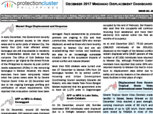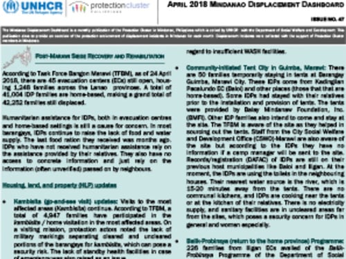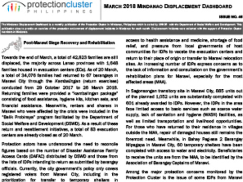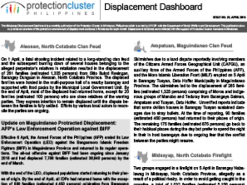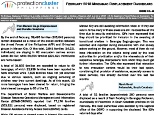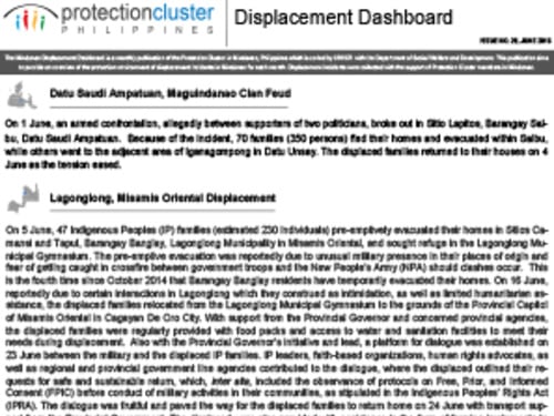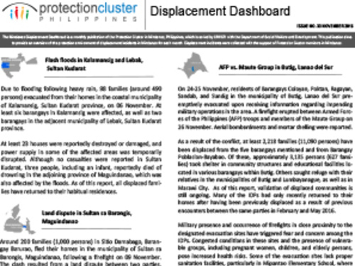 Mindanao Displacement Dashboards Mindanao Displacement Dashboards Download our Displacement Dashboards June 2023 November 2022 October 2022 September 2022 August 2022 July 2022 June 2022 May 2022 April 2022 March 2022 February 2022 January 2022 December 2021 November 2021 October 2021 September 2021 August 2021 July 2021 June 2021 May 2021 April 2021 March 2021 February 2021 January 2021 December 2020 November 2020 October 2020 September 2020 August 2020 July 2020 June 2020 May 2020 April 2020 March 2020 February 2020 January 2020 December 2019 November 2019 October 2019 September 2019 August 2019 July 2019 June 2019 May 2019 April 2019 November 2018 October 2018 September 2018 August 2018 July 2018 June 2018 May 2018 April 2018 March 2018 February 2018 January 2018 December 2017 November 2017 October 2017 September 2017 December 2016 - January 2017 November 2016 October 2016 September 2016 August 2016 July 2016 June 2016 May 2016 April 2016 March 2016 February 2016 2015 Mindanao Displacement Report