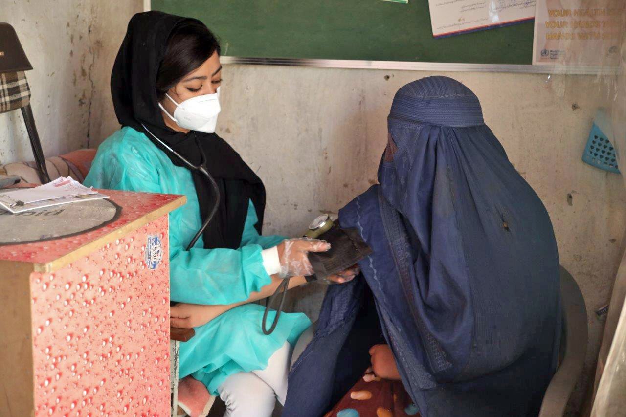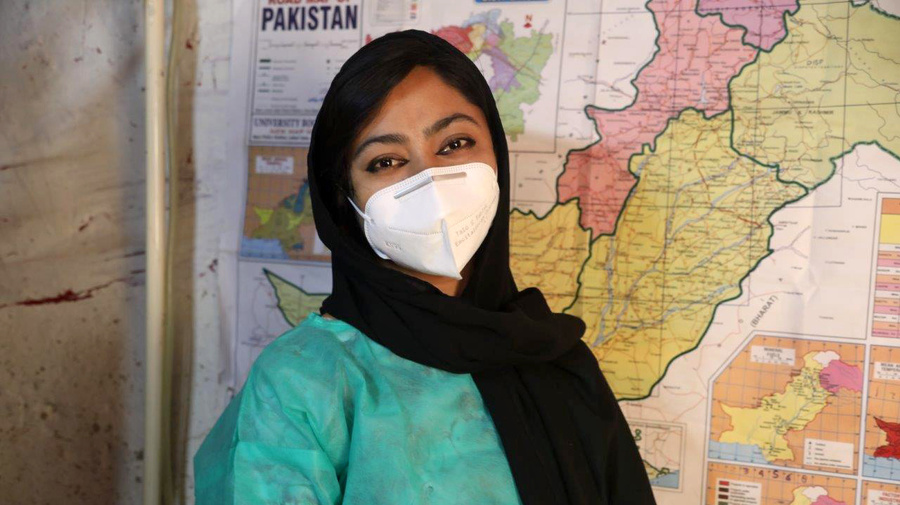 In a small medical clinic in Quetta, Pakistan, a young woman clad in a turquoise medical gown and surgical mask works briskly. Patients file into the cramped clinic, seeking help and medical care for different ailments. The clinic, located in a slum area with many refugee families, serves both refugees and the local community.