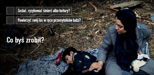 "Zostać, ryzykując śmierć albo tortury? Powierzyć swój los w ręce przemytników ludzi?" – to jeden z dylematów przedstawiony na tle matki ukrywającej się z małym dzieckiem w ciemnościach.