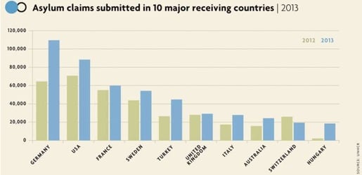 Rośnie liczba wniosków o nadanie statusu uchodźcy w krajach uprzemysłowionych