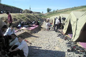 Uzbek asylum seekers fleeing a crackdown in Andijan, Uzbekistan in May 2005, intially sheltered at Barash camp on the banks of a river marking the border with neighbouring Kyrgyzstan.
