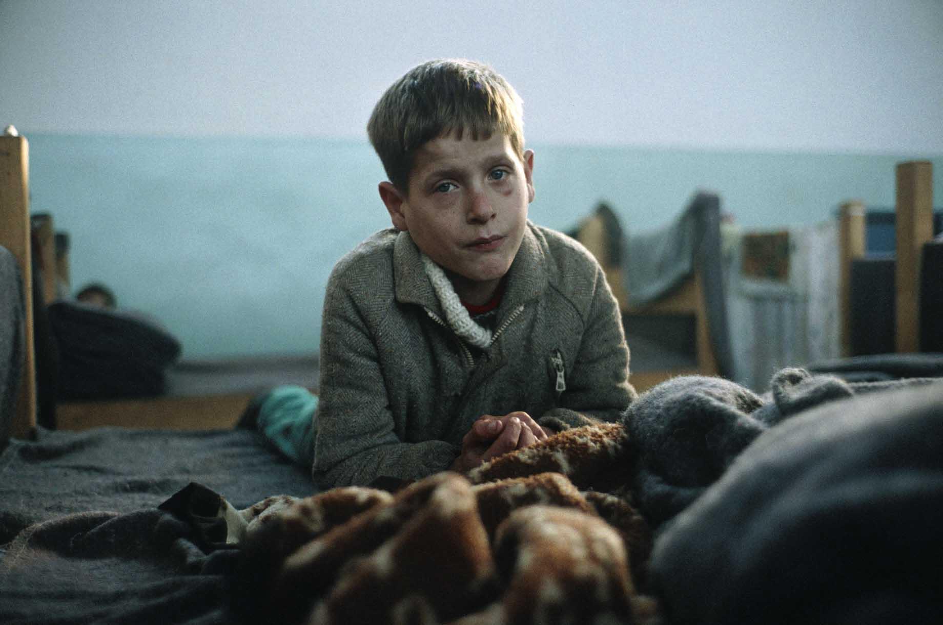 The fighting in Bosnia and Herzegovina caused families to flee their homes in search for safety and shelter. Many people, like this boy, made their way to collective centres.
