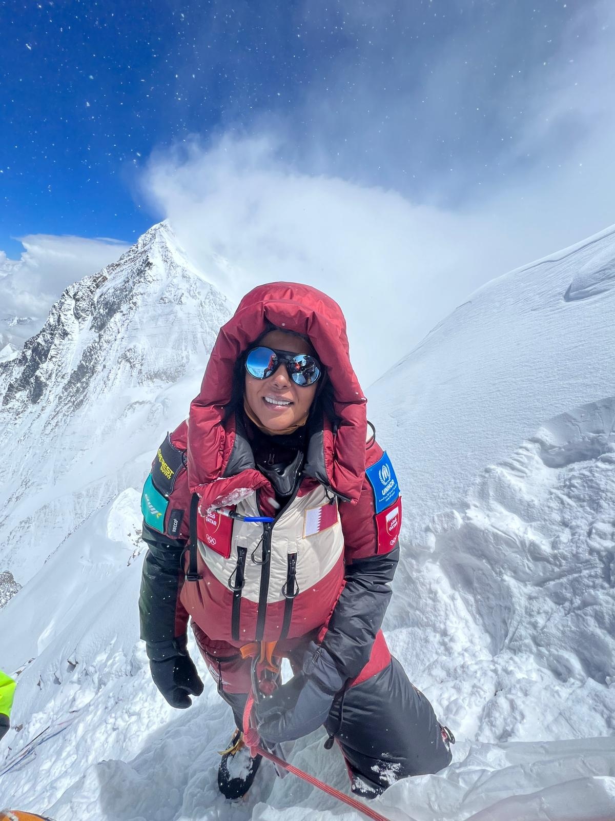 “As I pushed my limits and struggled to reach the top, I couldn’t help but think of the millions of refugees who embark on dangerous journeys to reach safety,” said Sheikha Asma Al Thani upon reaching the summit of Mount Everest on 7 June 2022.