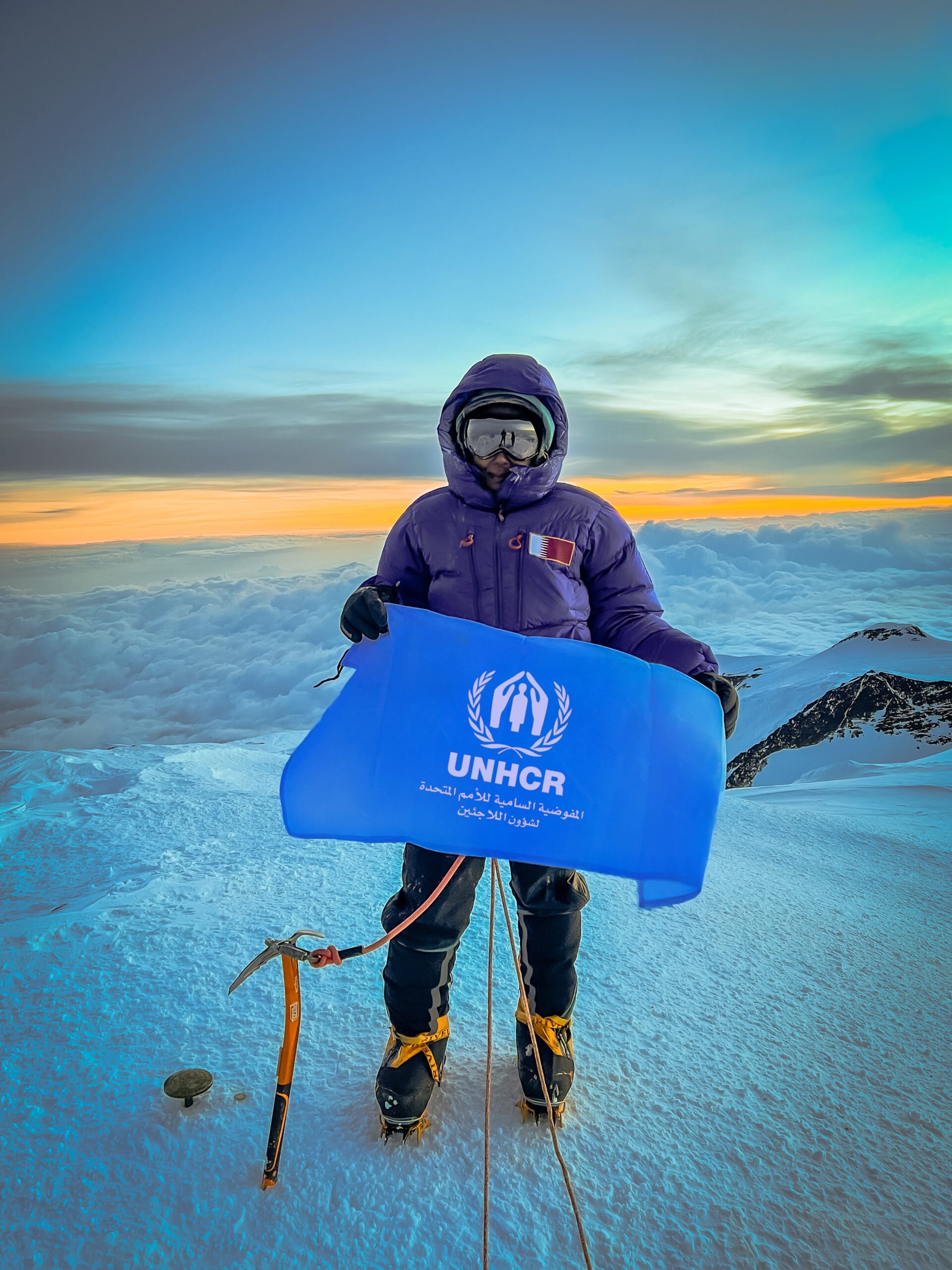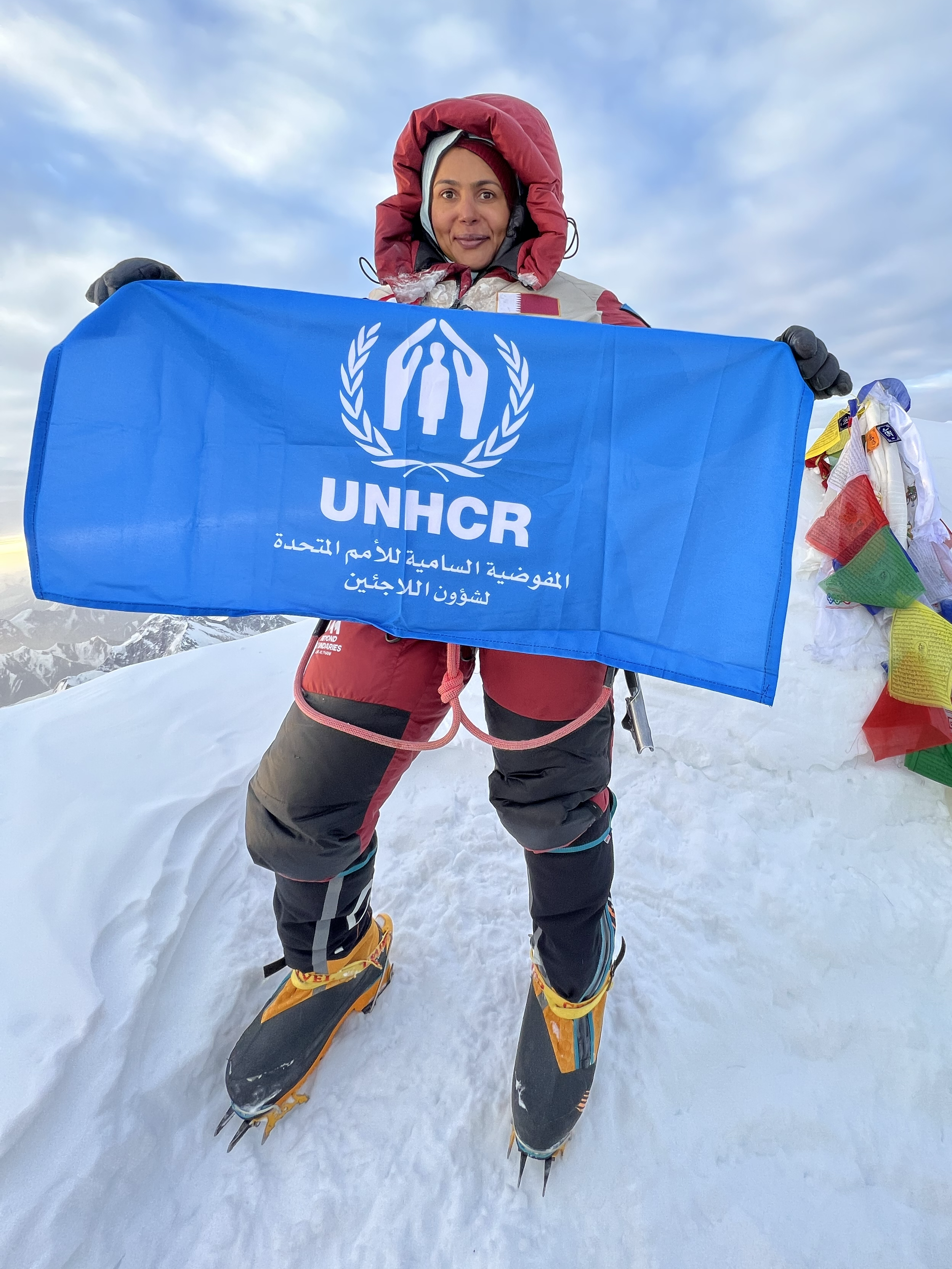 Sheikha Asma Al-Thani raises UNHCR flag on highest peak on earth