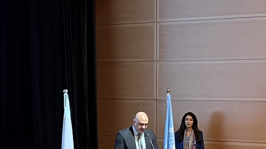 السيد أحمد محسن، النائب المكلف لممثل المفوضية لدى دول مجلس التعاون الخليجي وكبير مسؤولي العلاقات الخارجية، يلقي كلمة الترحيب في فعالية عرض الأفلام القصيرة التي نظمتها المفوضية بالتعاون مع معهد الدوحة للأفلام. © UNHCR