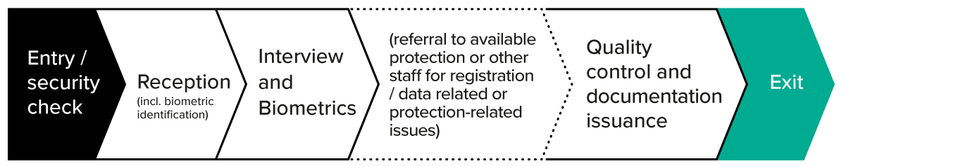 A typical continuous registration activity in an urban environment (e.g. UNHCR Office) may include the following steps: